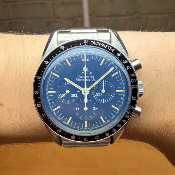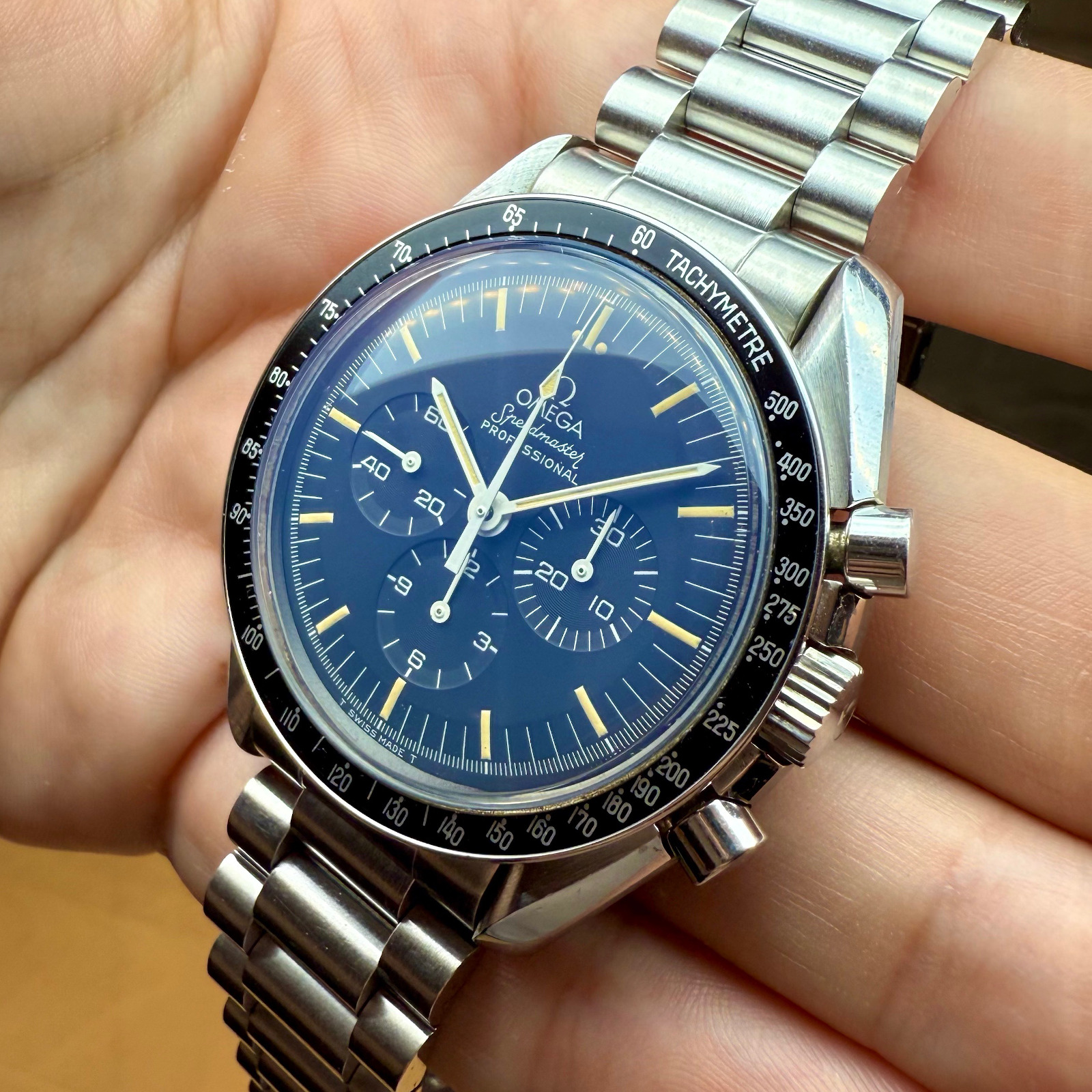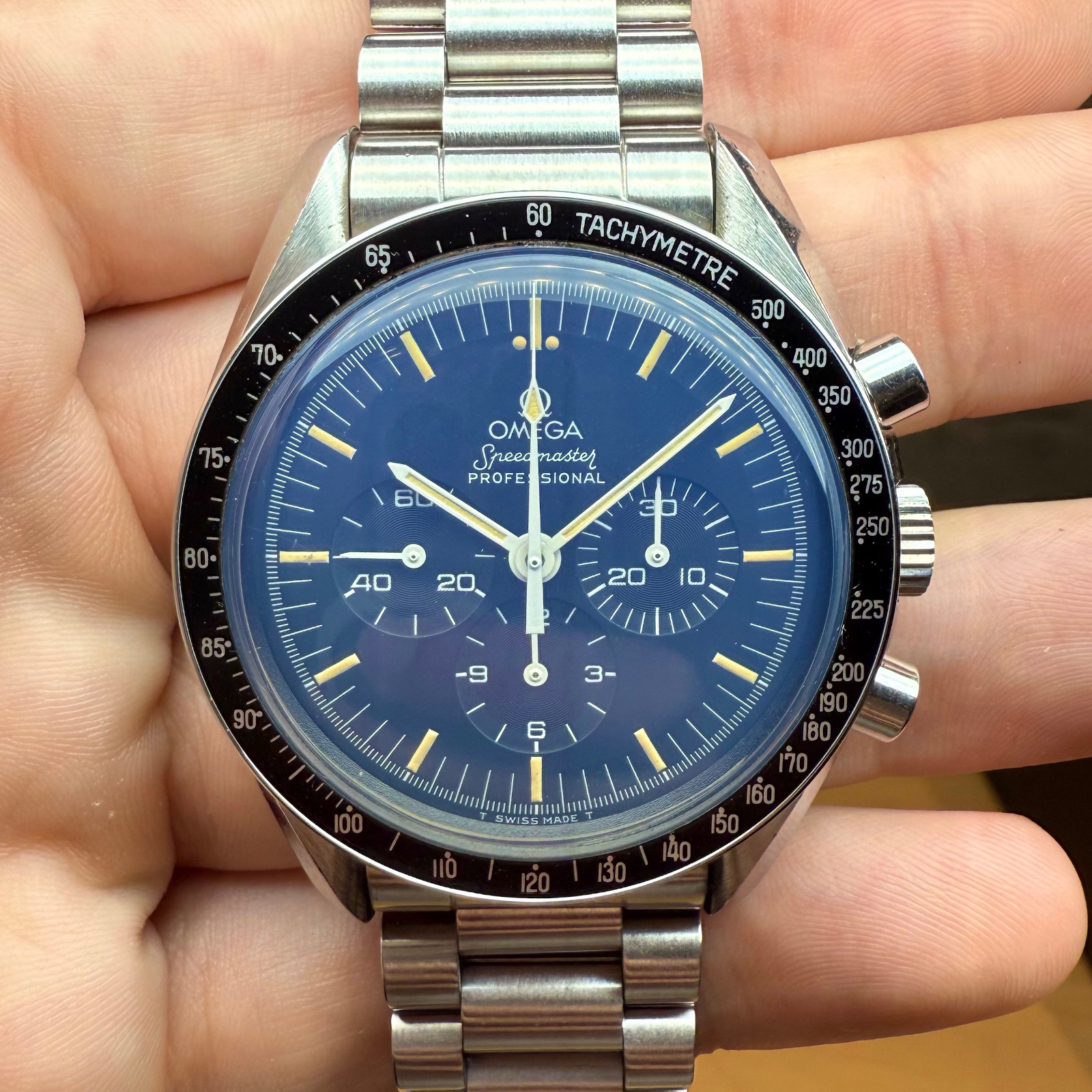 Rarissime Omega Speedmaster vintage 145.022 « Blue Hesalite » sur bracelet 1450