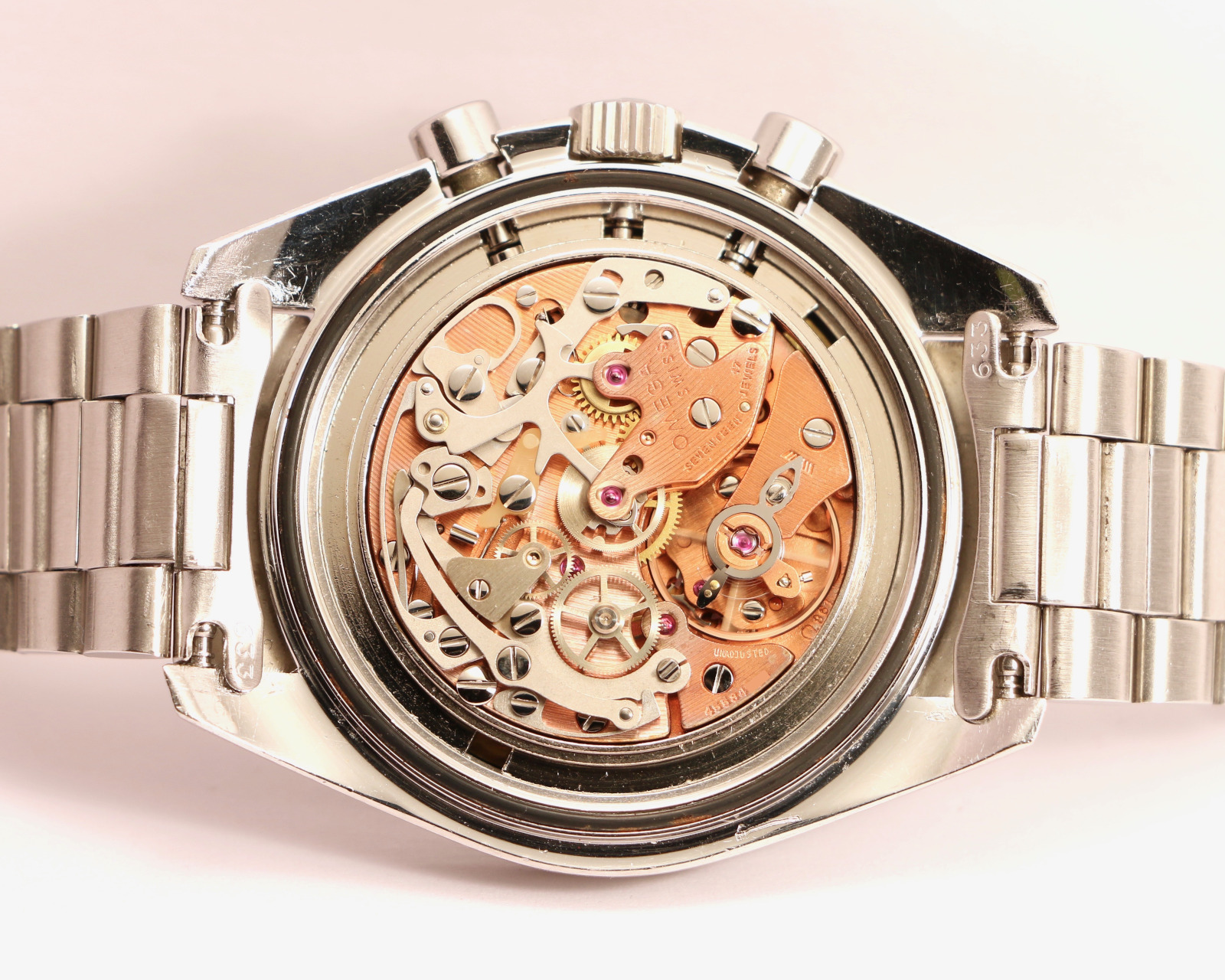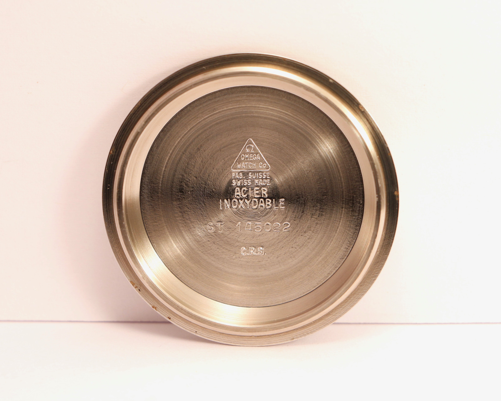 Le fond de boîte est signé CRS, abréviation de C.-R. Spillmann et Cie qui produisait les boîtiers de Speedmasters entre 1981 et 1987.