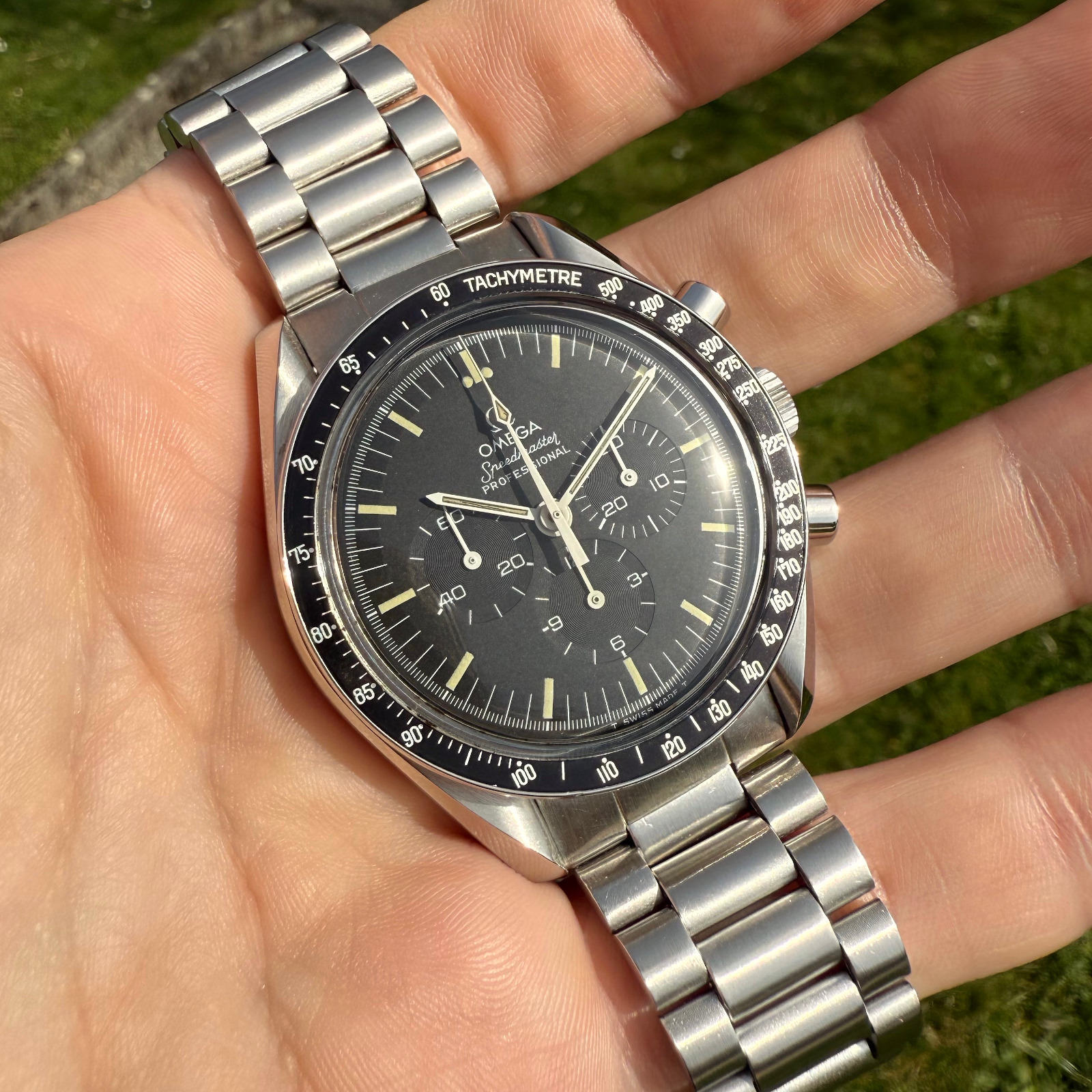 Très belle Omega Speedmaster vintage ref. 145.022. Elle a été produite en 1981 d'après son numéro de série.